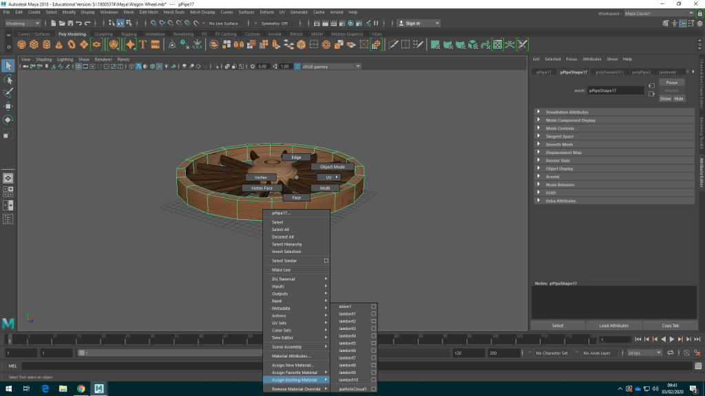 Now, to texture what you must do is right click an existing object (after saving any necessary textures) and assign an existing material. once selected it will place the texture over what was selected and you must click where the mouse is in the screenshot below.