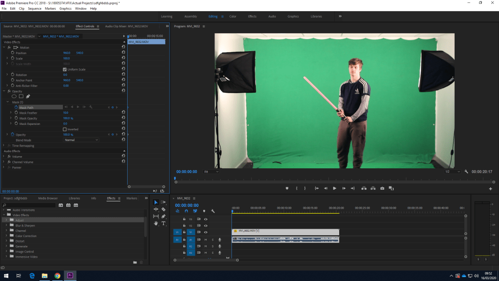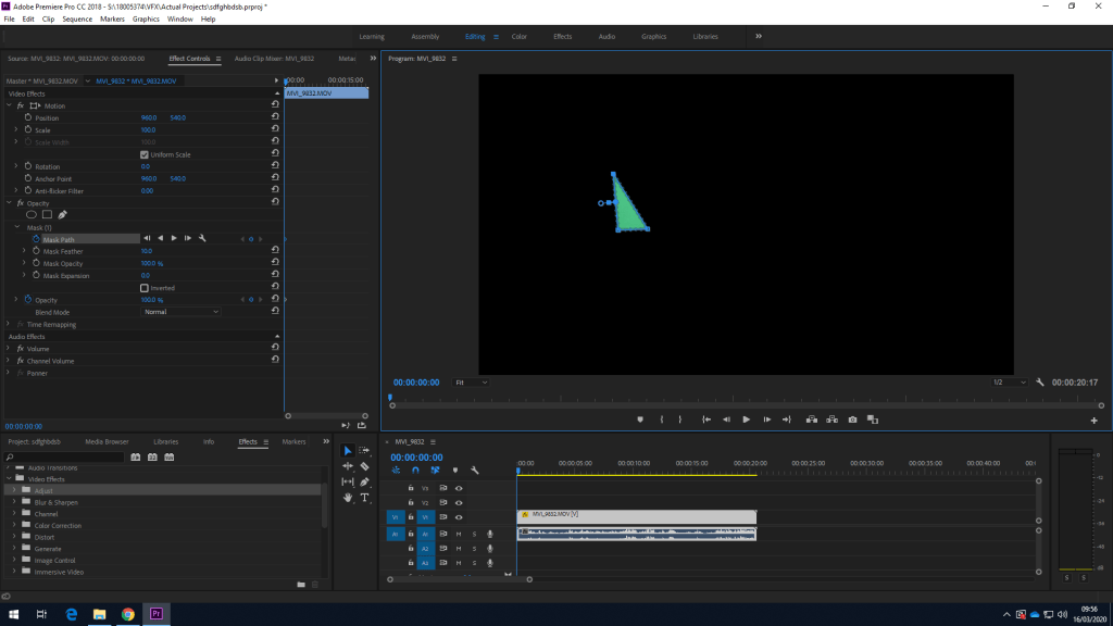 Once I had my footage, I selected the clip, went into effect controls and selected mask path. Once selected the program will allow you to select your points on top of the video. The mask will appear invented at first so you must tick the invert box as to turn it the right way round